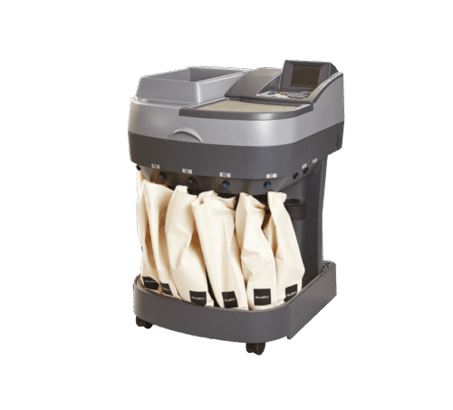 - Contadora de carga frontal fácil de usar con capacidad para 400 billetes en la tolva